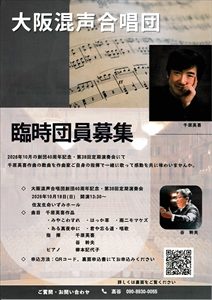 大阪混声合唱団では、下記の要領で臨時団員を募集されています。